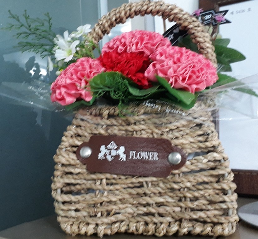 동아리에서 어버니날~~한복천으로 "카네이션 바구니"만들었어요