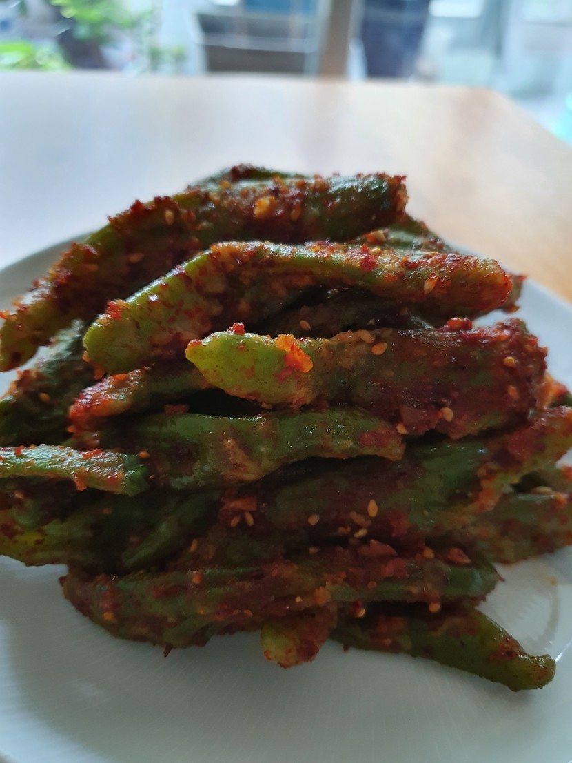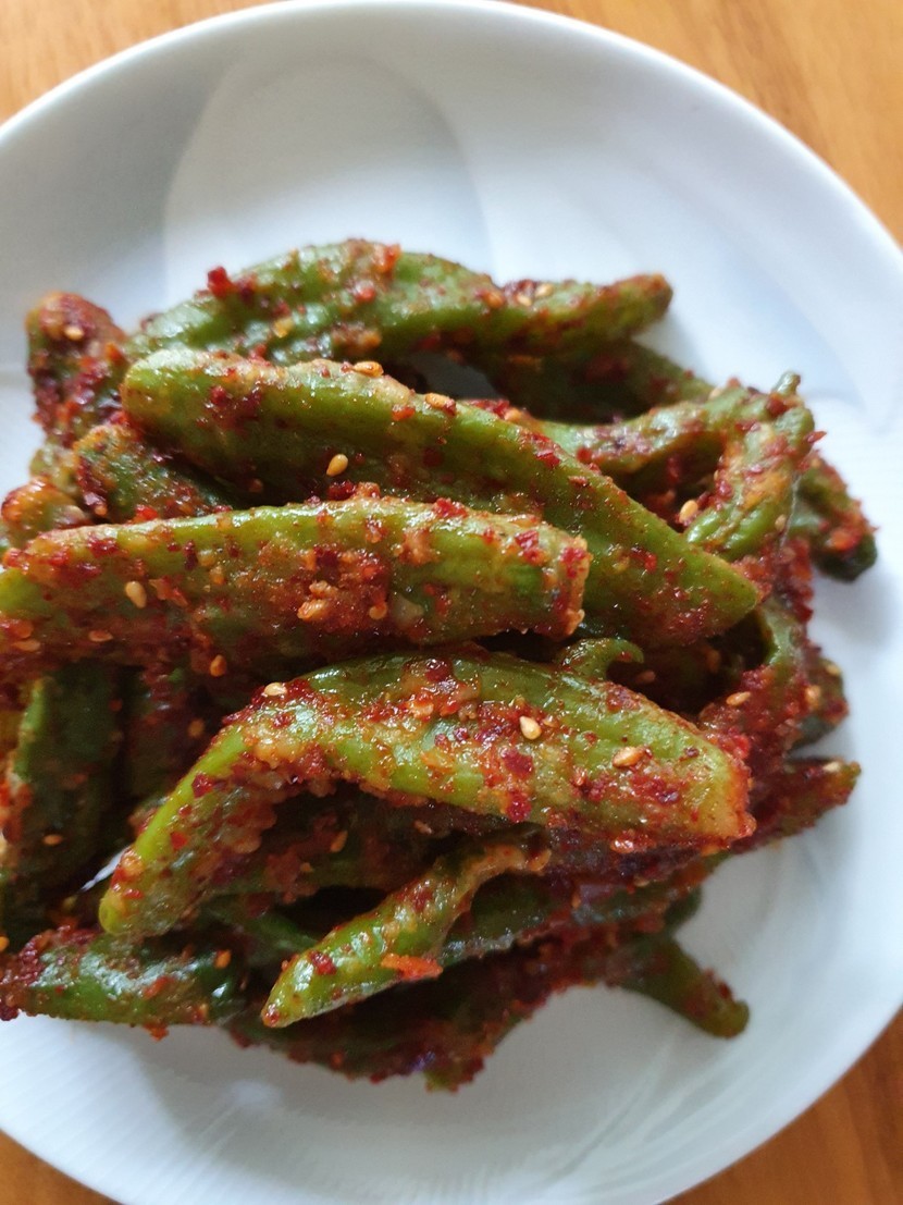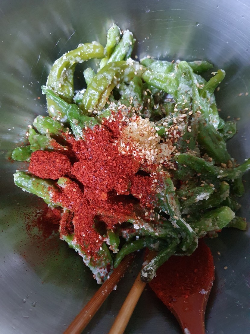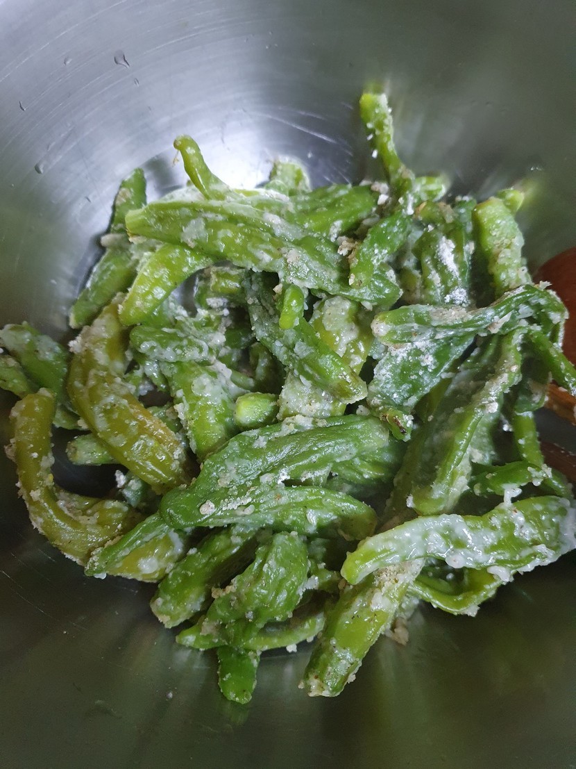 20.06.03 315 읽음 꽈리고추 찜🥕🌽🌶🍄🧄 mndjaak 구독하기 11 37 콘텐츠의 수익 21 농수산시장에 과일서러 갔다가 꽈리고추가 1키로에 4000원에 세일해서 사왔어요집에 도착해서 바로 요리를 시작했어요꽈리고추를 손질해서 깨끗이 씻은후 들깨가루 부침가루를 골고루 묻혀서 찜기에 날가루가 없이 잘익혀주세요익힌 꽈리고추를 뜨거운 김을 날린후고추가루 간장 마늘 참기름 깨를 넣고 숟가락 두개로 살살저어가며 버무려서 완성해요고추가루가 조금 과하게 들어가서 얼큰하지만 맛있어요 담에는 고추가루를 조금만 넣어야겠어요 37 0 / 300 입력