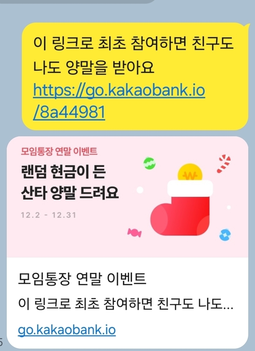 24.12.03 94 읽음 같이돈받아요 여행을 꿈꾸는자🎵🎶 구독하기 3 3 콘텐츠의 수익 3 이 링크로 최초 참여하면 친구도 나도 양말을 받아요https://go.kakaobank.io/8a44981 3 0 / 300 입력
