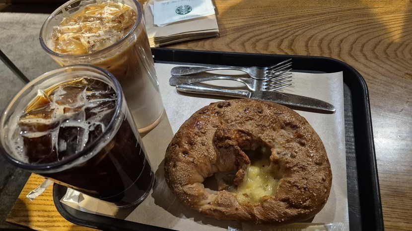 24.12.19 376 읽음 스타벅스 경동1960 puglet 구독하기 89 83 콘텐츠의 수익 6 경동시장 안에 있는 스타벅스 경동1960 다녀왔습니다폐극장을 보수해서 거의 폐극장 형태 그대로 만들었다더니정말 극장 같은 계단식 모양을 하고 있어요테이블도 마주보는게 아니라 나란히 앉게 되어 있더라고요경동1960에만 있는 음료도 있었지만너무 사악한 가격에 평소 마시던 음료에다른 곳에서는 없는 빵을 주문했어요호두와 치즈가 어우러져 맛있게 먹었습니다기대가 컸는지 생각보다는 만족도가 떨어지지만특색있고 새로운 경험이었습니다~ 83 0 / 300 입력