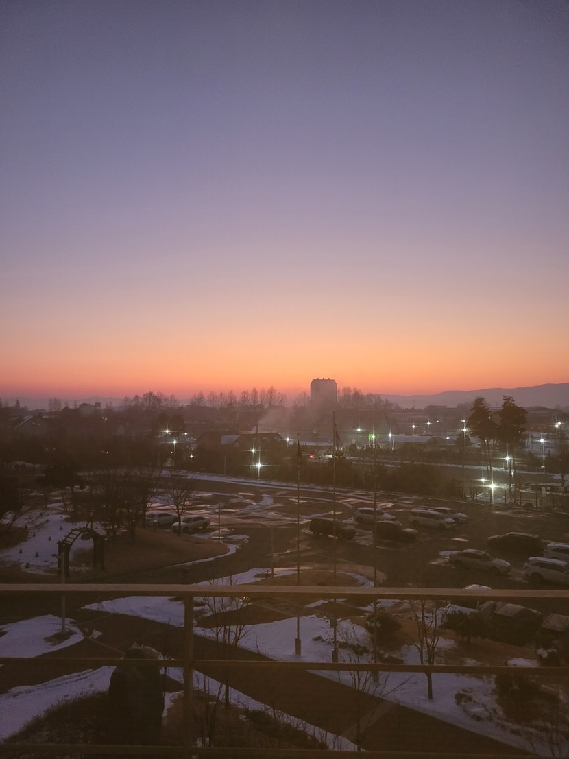 눈덮힌 풍경속 일출