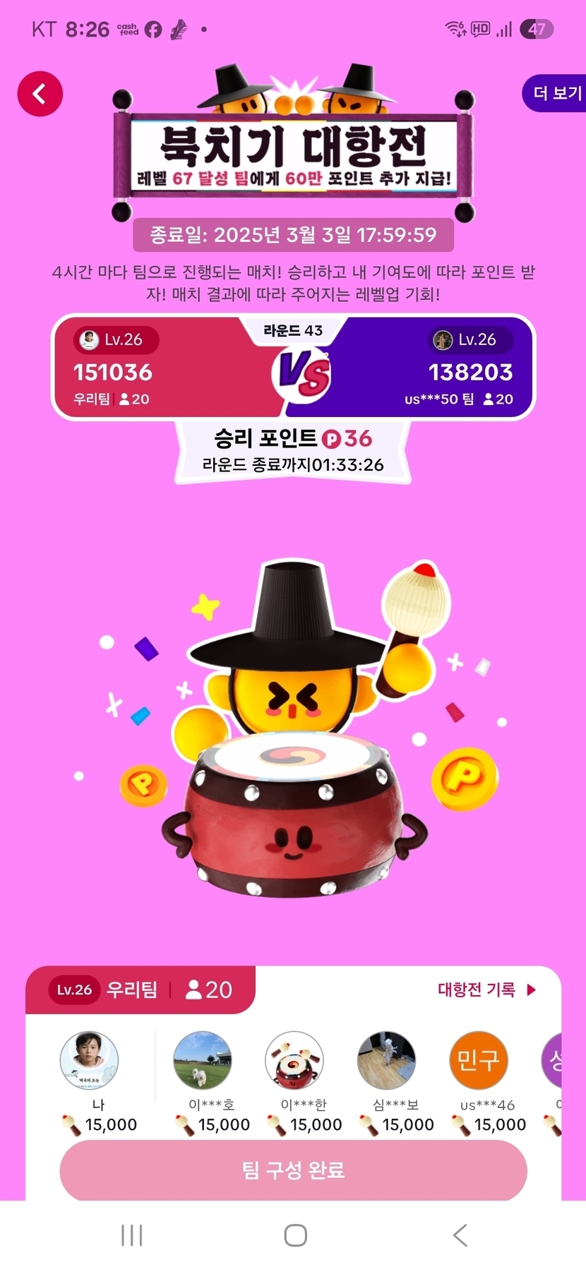 25.02.27 55 읽음 2.27 숙제 .빈센조. 구독하기 2 4 콘텐츠의 수익 0 북치기 대전 이벤트 캐시 벌기 힘드네요 피드님들 즐거운 저녁시간 되세요숙제 올려 보아요 4 0 / 300 입력