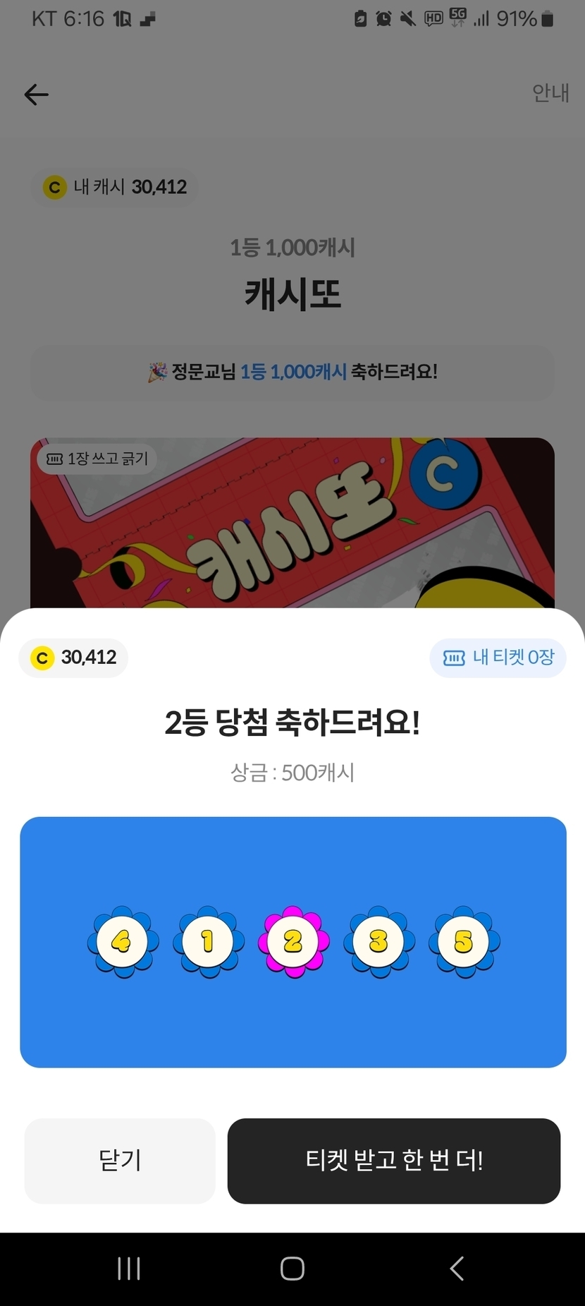 캐시또 2등 당첨