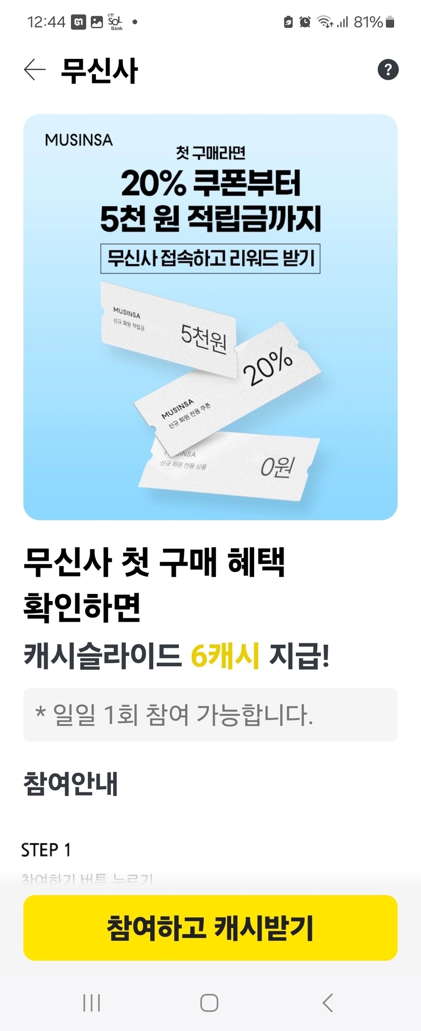 6캐시 받았어요