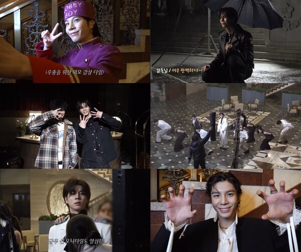 이어진 뮤직비디오 촬영 현장에서는 호텔 로비보이로 변신해 손님을 짝사랑하는 역할을 소화했다. 능청스러운 연기로 분위기를 화기애애하게 이끌었으며, 액션씬 촬영을 위해 짧은 무술 수업을 받은 후 곧바로 완벽하게 습득해 선보이며 현장 스태프들의 찬사를 받았다.
