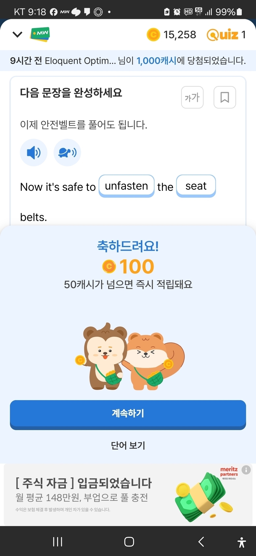 100원에 행운