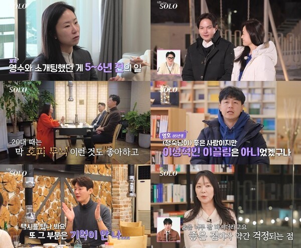 싱글리스트14일(수) 방송한 SBS Plus와 ENA의 리얼 데이팅 프로그램 ‘나는 SOLO’에서는 26기 ‘골드 특집’ 솔로녀들이 ‘자기소개 타임’으로 리얼 프로필을 밝히는 모습이 그려졌다. 또한 첫 데이트 선택에서는 ‘다대일 데이트’를 피하려 한 솔로남들의 전략 덕분에 광수가 ‘인기녀’ 현숙과 ‘1:1 데이트’를 하게 돼 흥미를 자아냈다.