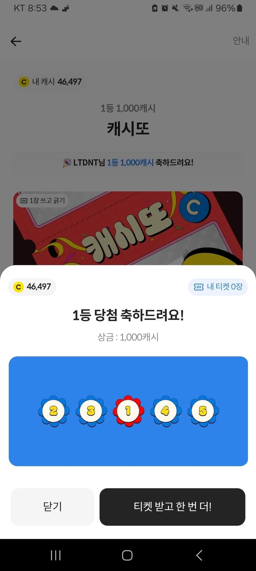 캐시또 1등 당첨!