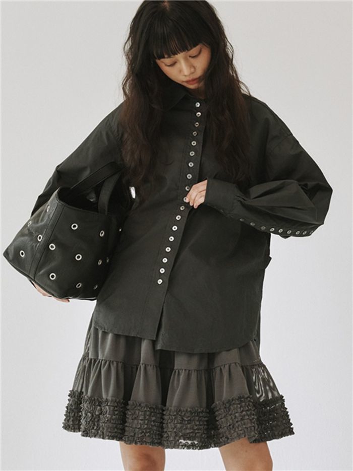 프론트 버튼 디테일이 포인트인데, 차콜 그레이 컬러로 세련된 분위기가 더해진다. 캐주얼한 데님 팬츠나 슬랙스와 매치해도 다른 무드를 살릴 수 있겠다.