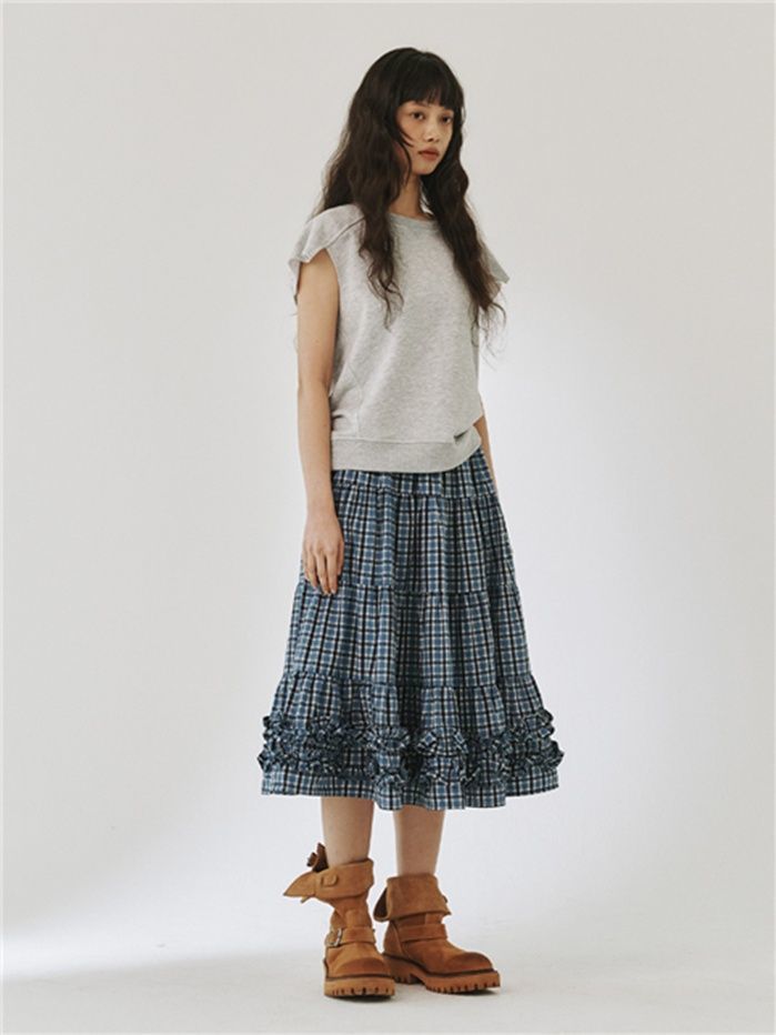 특히 블루 체크 패턴이 경쾌하면서도 클래식한 분위기를 자아내며, 다양한 상의와 매치하기 좋은데,허리에는 드로스트링 밴딩이 적용되어 편안한 착용감을 제공한다.