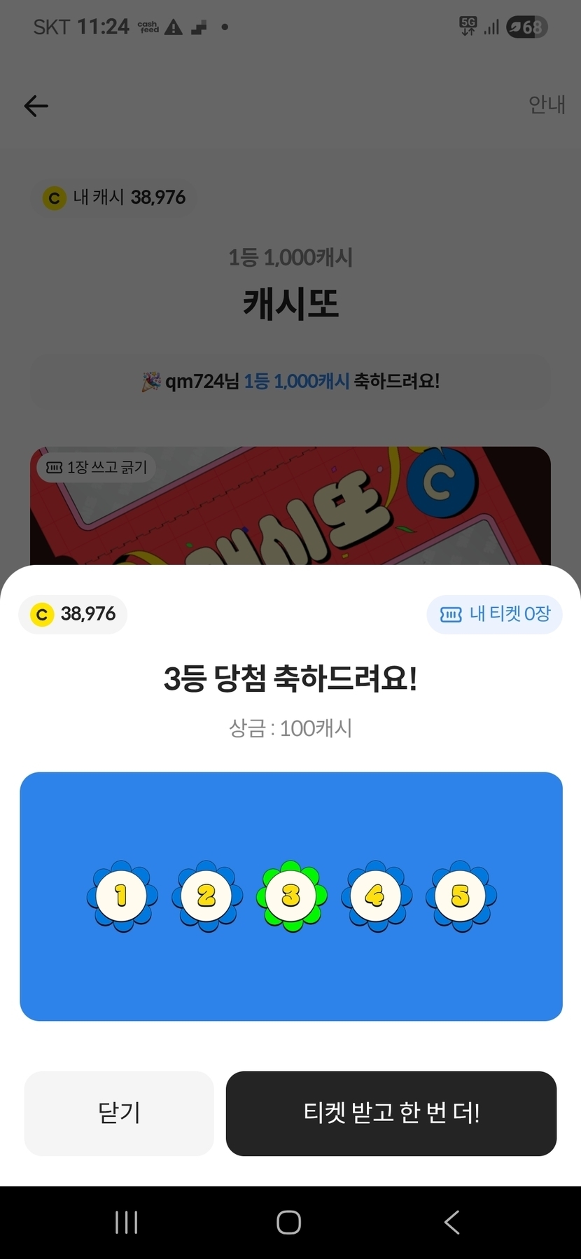 오~ 100캐쉬 땡큐ㅎ