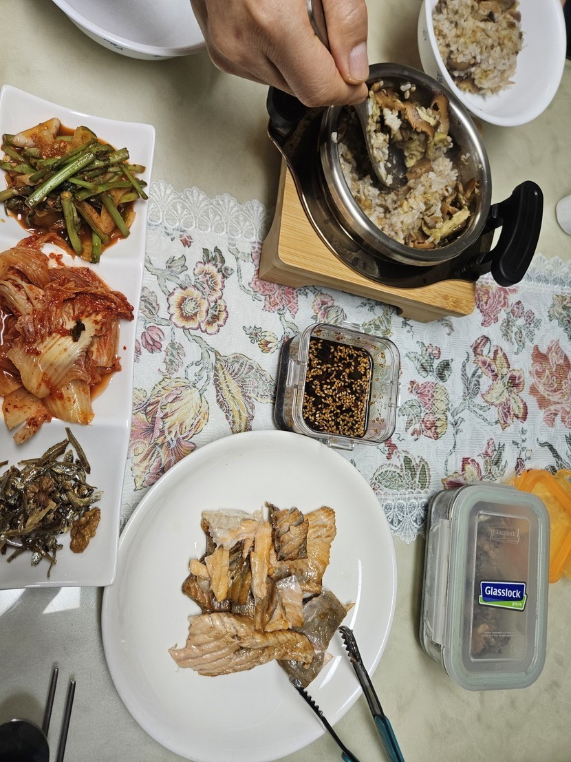 가지솥밥과 연어구이🕺쉰나 쉰나 🤾♀️