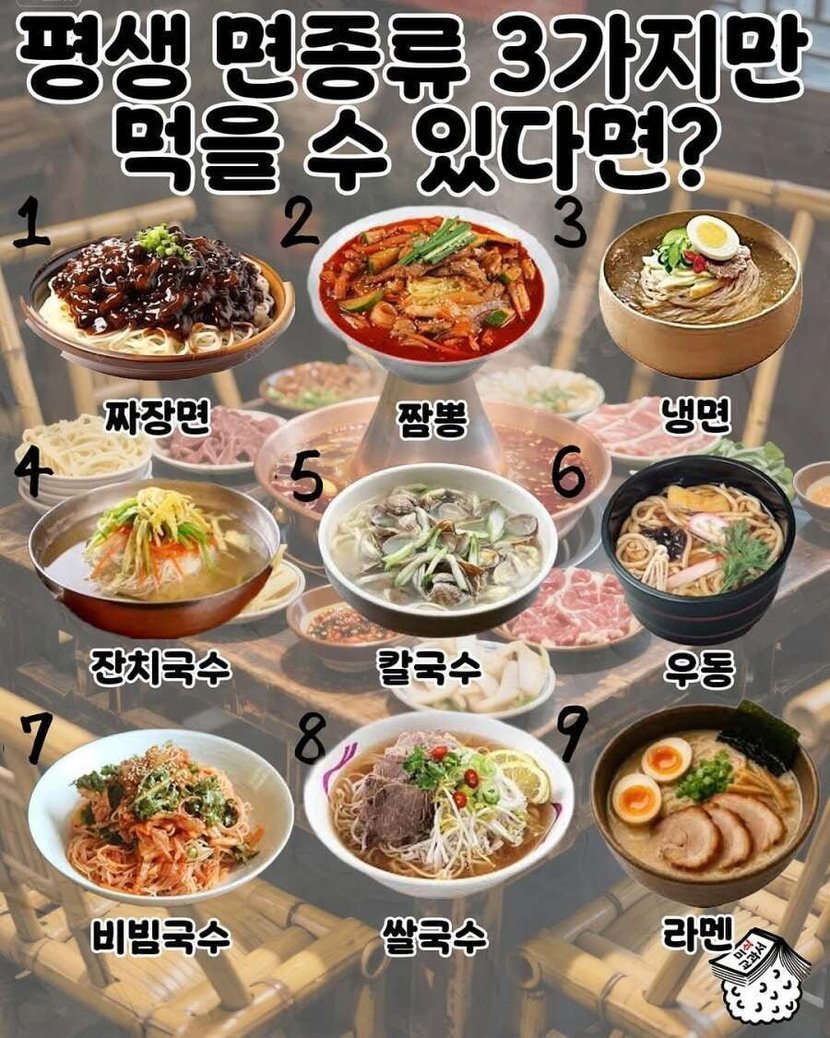 평생 면종류 3가지만 먹을 수 있다면