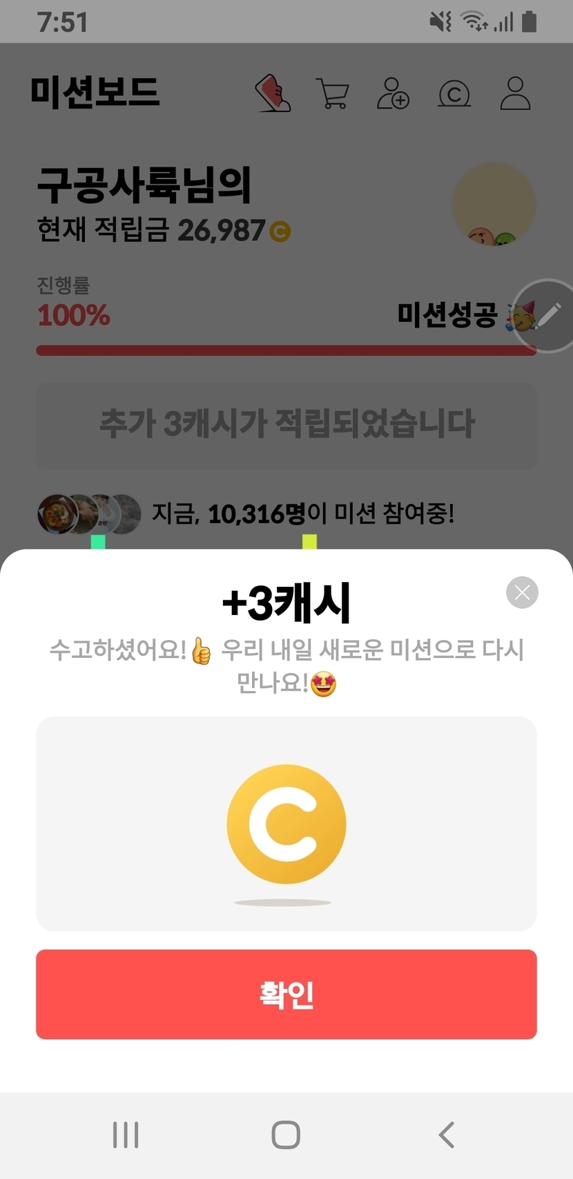 미션 완료 3캐시