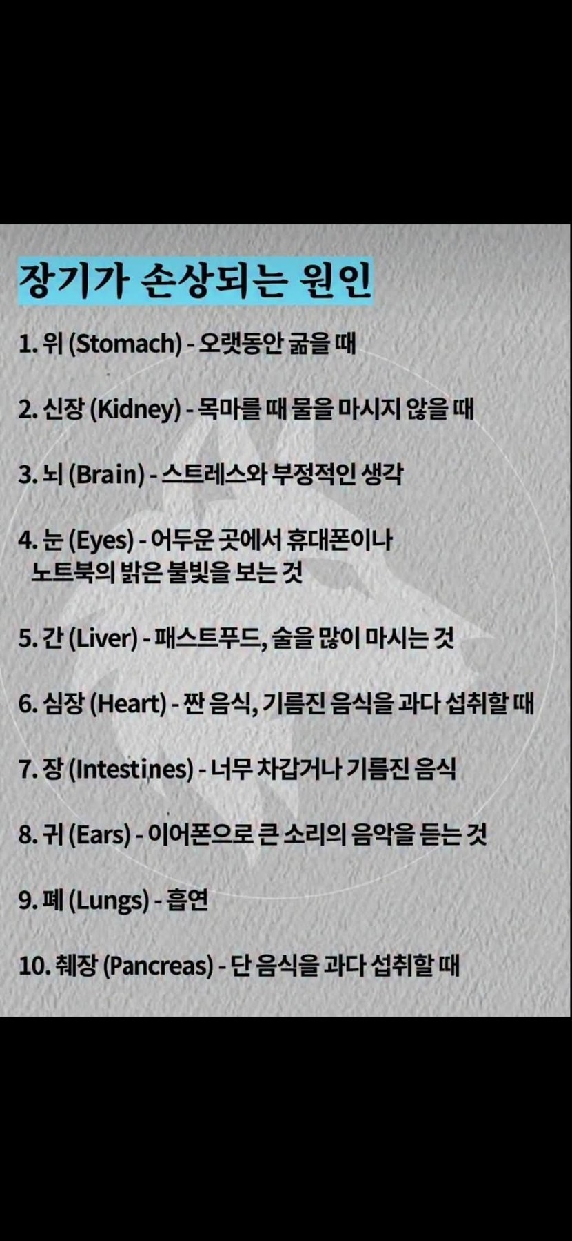 장기 손상 원인