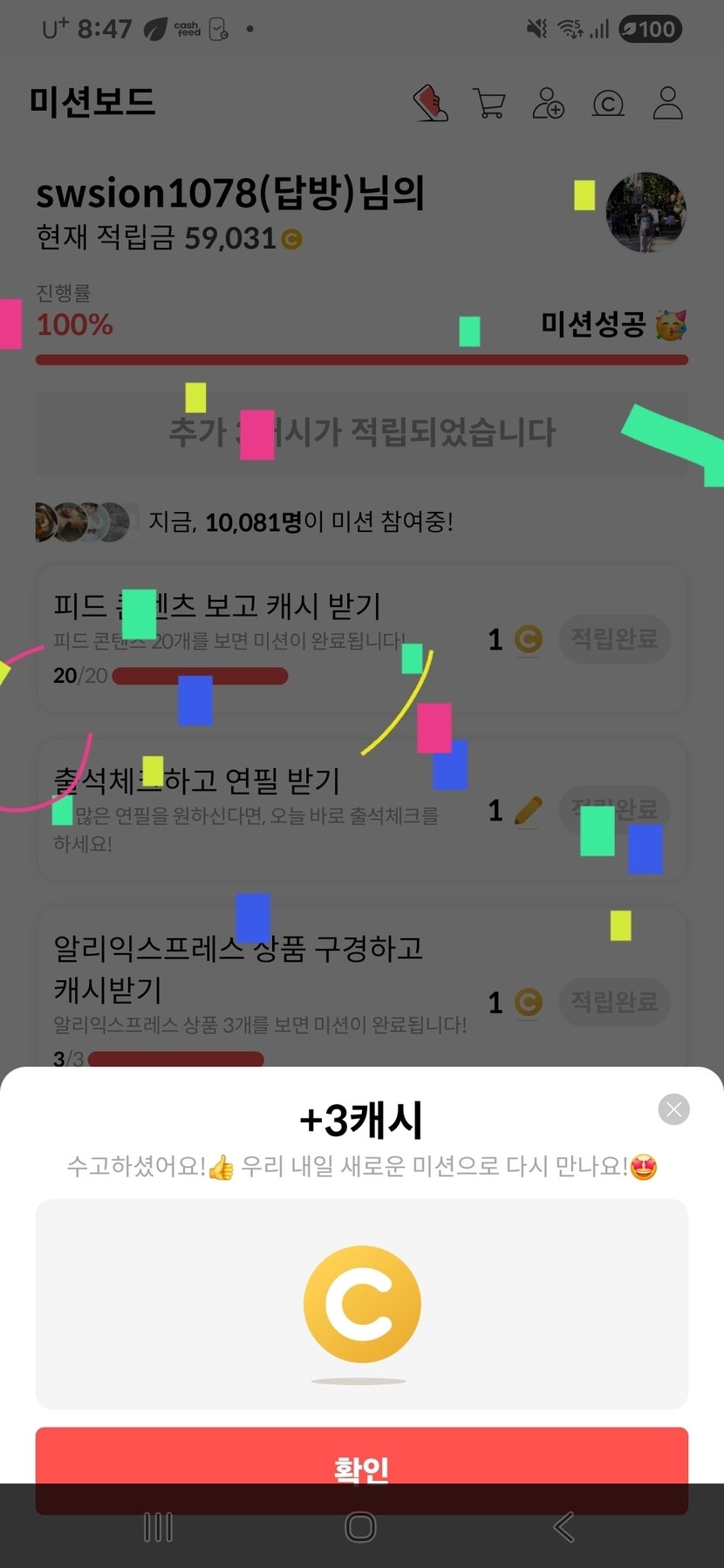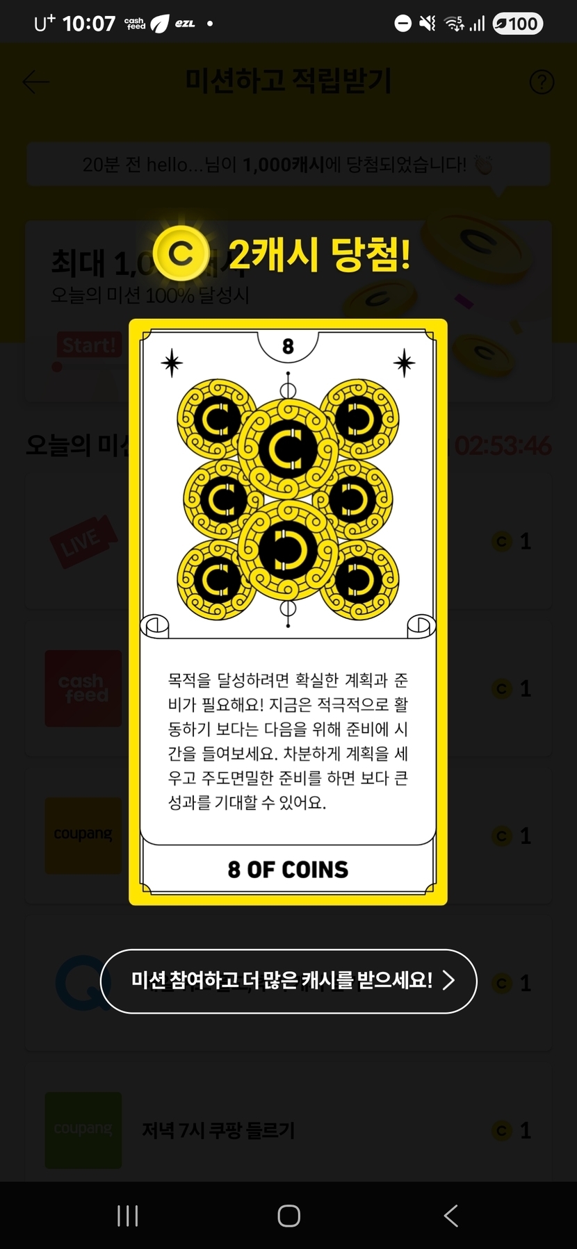 25.11.24 109 읽음 랜덤캐시,미션보드 미션완료!! swsion1078(답방) 구독하기 19 15 콘텐츠의 수익 5 11월24일 랜덤캐시 미션완료 2캐시, 미션보드 미션완료 3캐시, 타로카드는 2캐시, 비디오시청은 2캐시 받았어요. 15 0 / 300 입력
