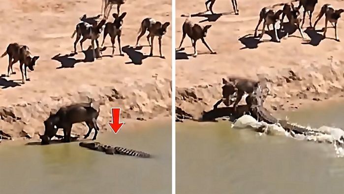 악어가 가까이 왔는데도 멧돼지가 전혀 눈치 채지 못한 '소름돋는 순간'