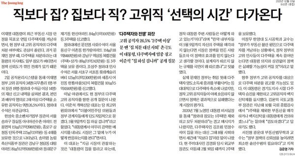 조선일보 “청와대 관계자들부터 다주택 시장에 내놓을 필요”
