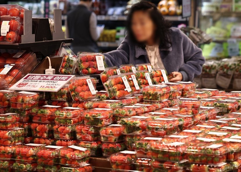 마트에서 소비자가 사는 가격도 만만치 않다. 한국농수산식품유통공사가 집계한 2일 기준 딸기 상품 소매가는 kg당 2만2736원이다. 전년 같은 날(2만189원)과 비교하면 13.6% 오른 수준이다. 지난달 월평균 소매가 역시 kg당 2만4500원으로 전년(2만3600원)보다 4% 높게 형성됐다.