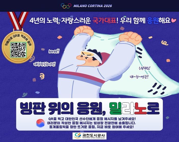 시민들은 2월 3일부터 20일까지 빙상장 내 설치된 배너 또는 과천도시공사 홈페이지의 QR코드를 통해 응원 메시지를 신청할 수 있다.