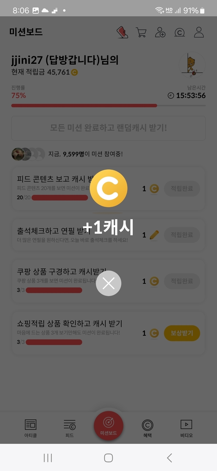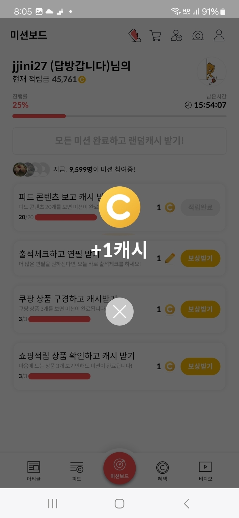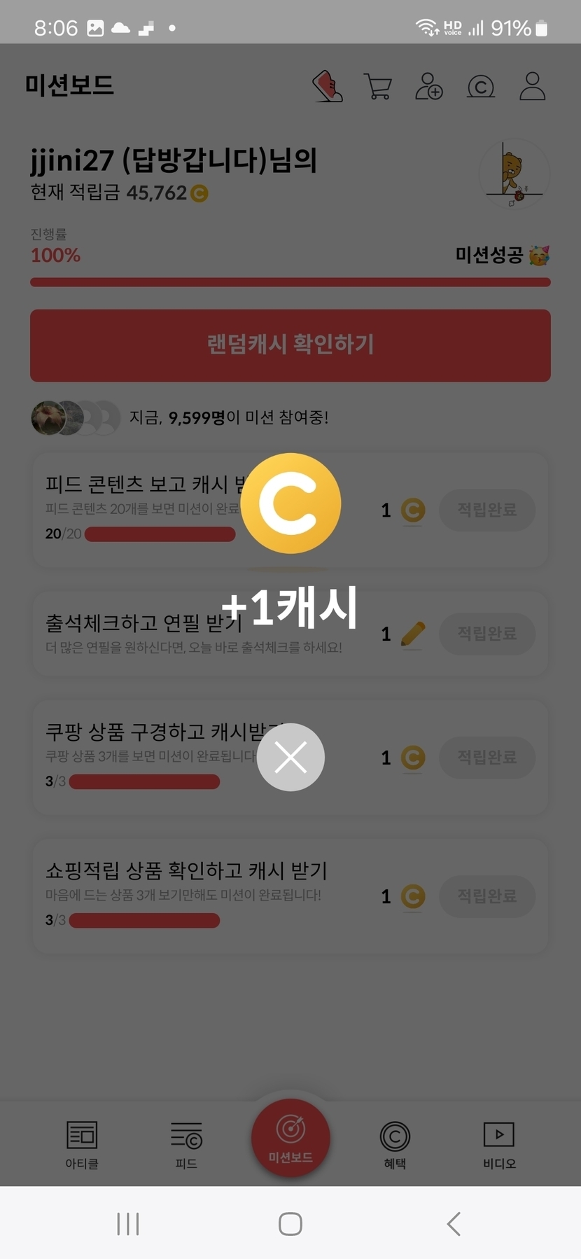 2주 전 200 읽음 3월 8일 오늘의 미션보드 완료 jjini27 (답방갑니다) 구독하기 55 55 콘텐츠의 수익 7 오늘의 미션보드 완료후 6캐시 받았어요 일요일아침 여유롭고 행복한 하루되세요 오늘도 활짝 ^_____________________^. 55 0 / 300 입력