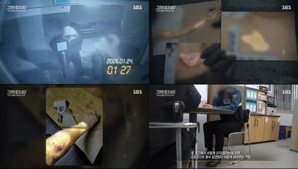 피의자는 피해자 현관 앞 CCTV에 찍히지 않았다. 취재진은 그가 계단을 이용한 것으로 추정했다. 수사기관으로 받은 물품이 실마리를 제공했다.