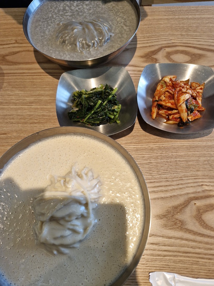 2주 전 219 읽음 진~한 콩국수 🍊츄츄🍊 구독하기 26 25 콘텐츠의 수익 5 진~한 콩국수가 먹고싶어서 오랜만에 간 가게.나만 알고픈 울동네 콩국수 가게인데, 늘 사람이 많아요... 많이들 알고 있는 가게...^^노란콩국수, 검은 콩국수 둘 다 맛있지만, 개인적으로는 노란콩국수가 더 깊은 느낌. (콩이 달라서 그런건가...?)점점 번창하는게 느껴지는 가게입니다~✨️ 25 0 / 300 입력
