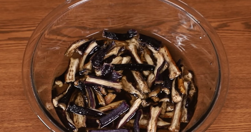 가지가 충분히 불어나면 물에서 건져 가볍게 헹군 뒤 물기를 짠다. 이때 너무 세게 짜면 가지가 부서질 수 있기 때문에 적당히 물기만 제거하는 것이 좋다. 이후 먹기 좋은 길이로 5~6cm 정도로 잘라 준비한다.