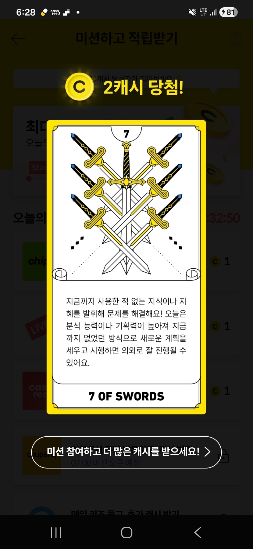 캐시슬라이드 오늘의 미션타로