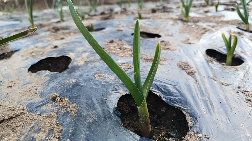 겨우내 비닐로 씌워 놓았던 마늘입니다.