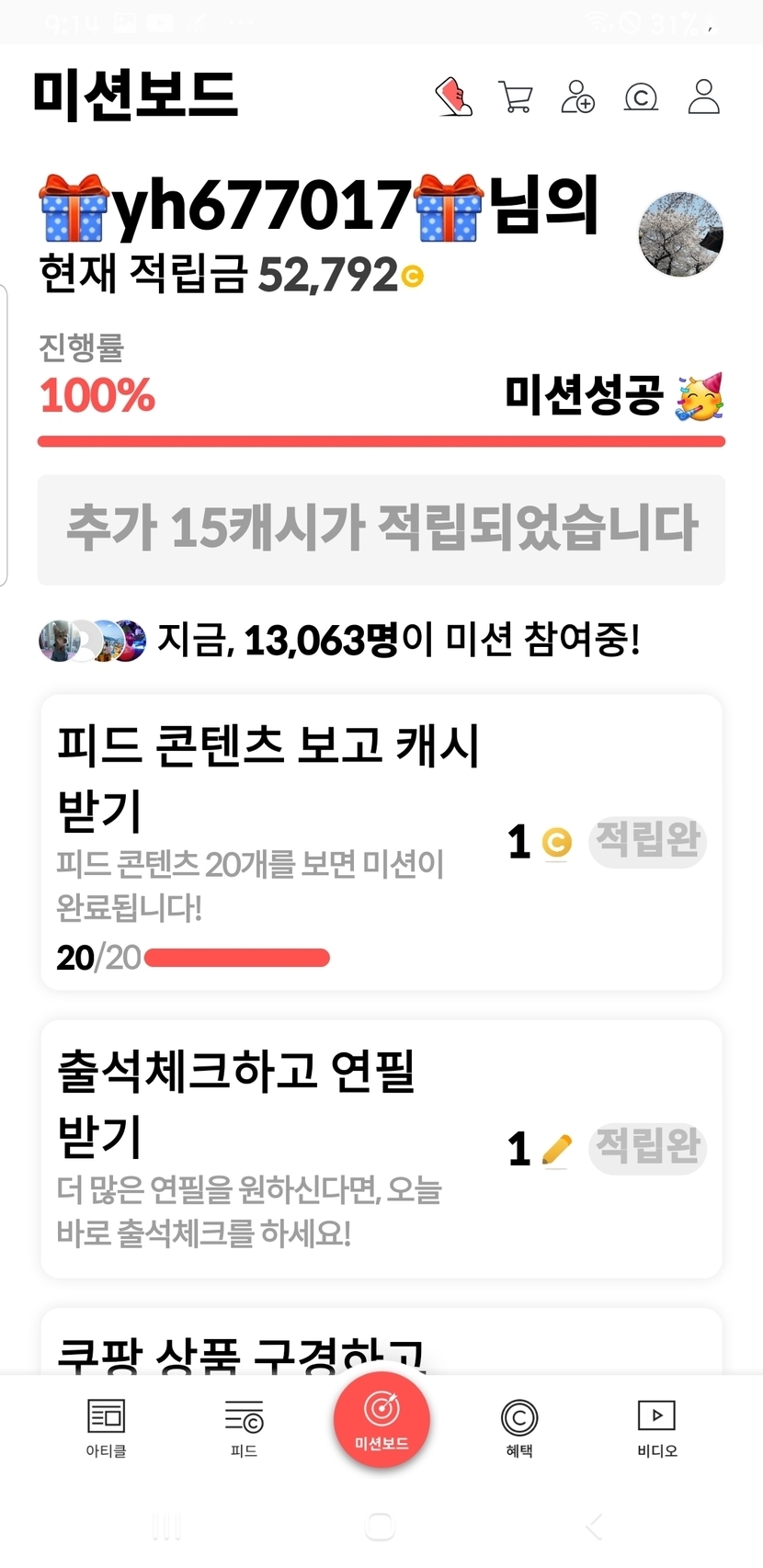 오늘의 미션보드