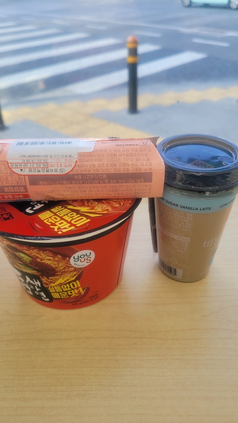 아침에간단히 김밥이랑 컵라면^^