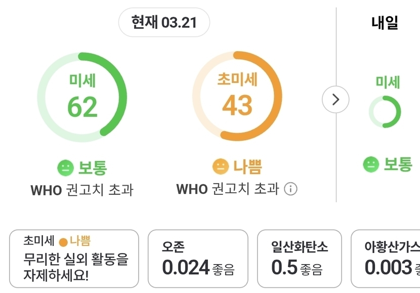 미세는 보통~.초미세는 나쁨으로 ~