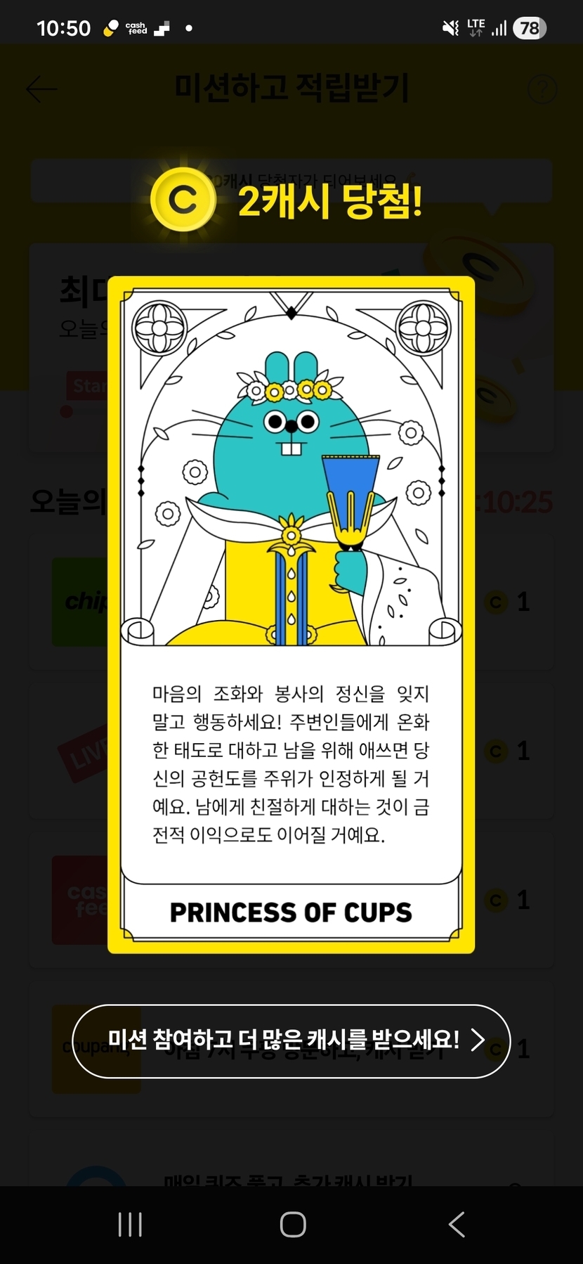 캐시슬라이드 오늘의 미션타로