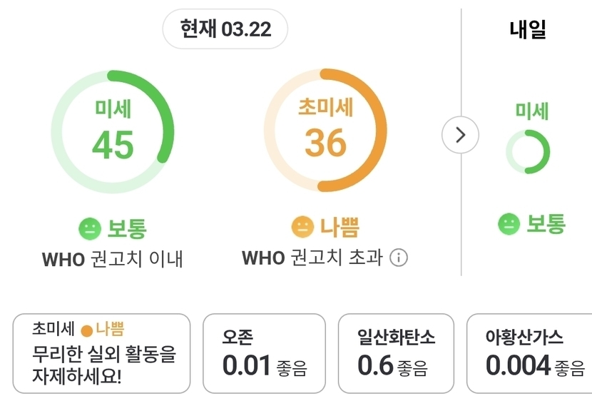 미세는 보통~.초미세는 나쁨으로 ~