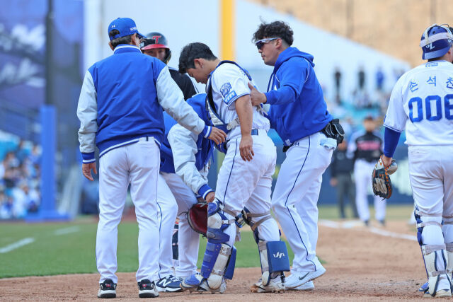 9회초 포수 박진우가 파울 타구에 오른쪽 쇄골을 강하게 맞아 교체됐다. 삼성 관계자는 "병원 이동 후 검진 예정"이라고 밝혔다. 지명타자 강민호가 급하게 포수 마스크를 썼다. 삼성은 추가 실점 없이 9회초를 끝냈다.