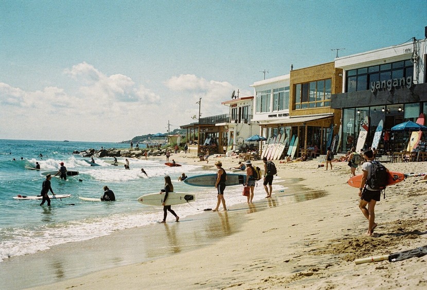 서핑을 직접 체험하지 않더라도 해변의 활기찬 에너지를 느끼기에 충분한 동해안 2박 3일 여행 코스의 명소