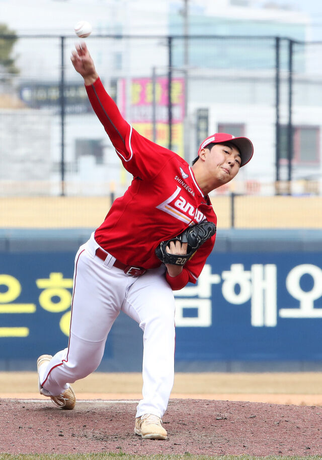 김민준은 지난 20일 인천 SSG랜더스필드에서 열린 2026 KBO 시범경기 LG 트윈스와 경기에 선발로 나와 3이닝 2피안타 1사사구 3탈삼진 무실점 호투를 펼쳤다. 우승팀을 상대로 대범한 피칭을 선보인 것.