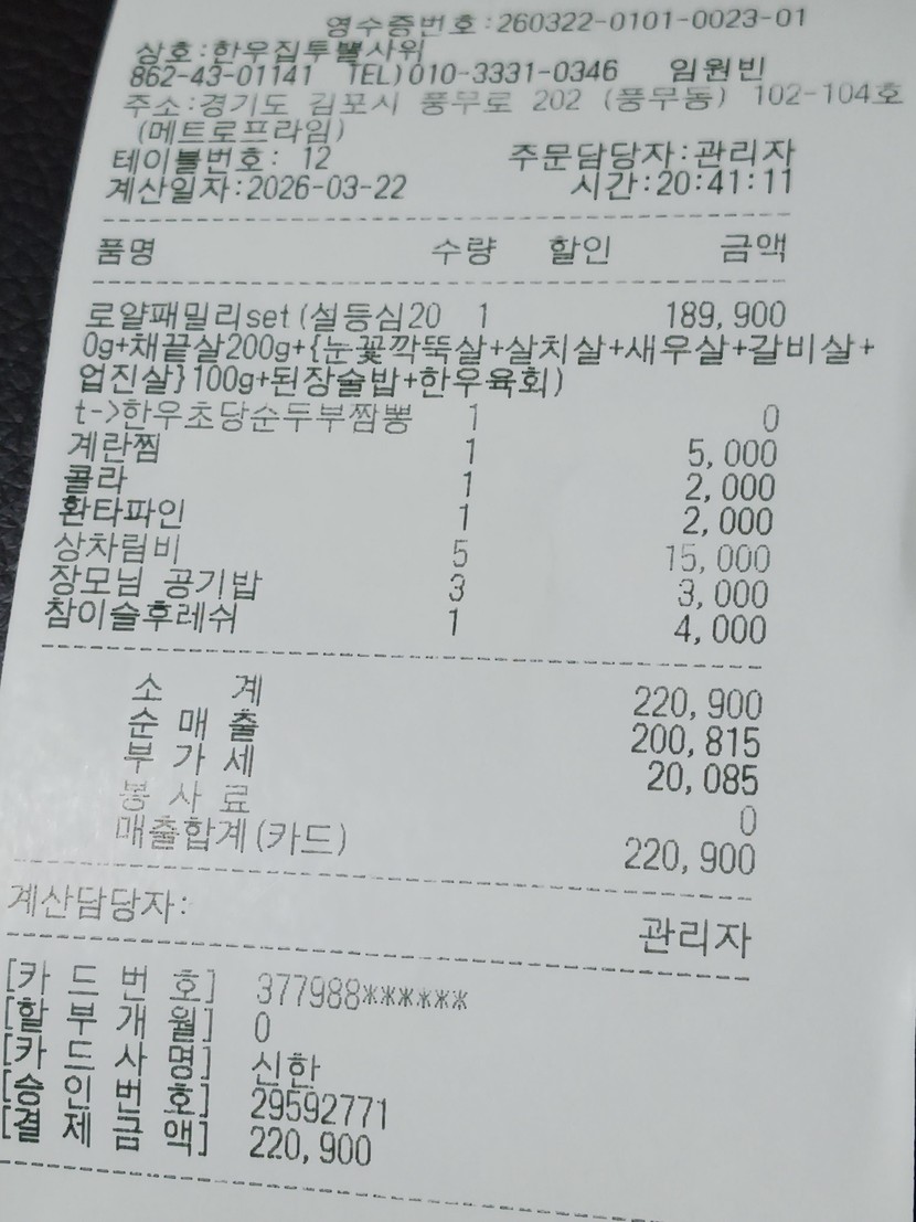 1주 전 352 읽음 사위집 한우 깜찍할멍 구독하기 86 95 콘텐츠의 수익 13 딸이 진짜 한우먹고프다고교회옆 한우집이항상 사람들이 많다고그래 가보자 ㅡㅡㅡ정말 사람들이 많이 있네요꼬맹이들은 한우보다돼지를 좋아해서억지로 달래며 먹였네요약간배부른 상태로 가서지난번 사돈이랑 갔을때보다10 여 만원 덜 나왔네요비싸긴 비싸네요요 육회는 나는 안먹지요 95 0 / 300 입력