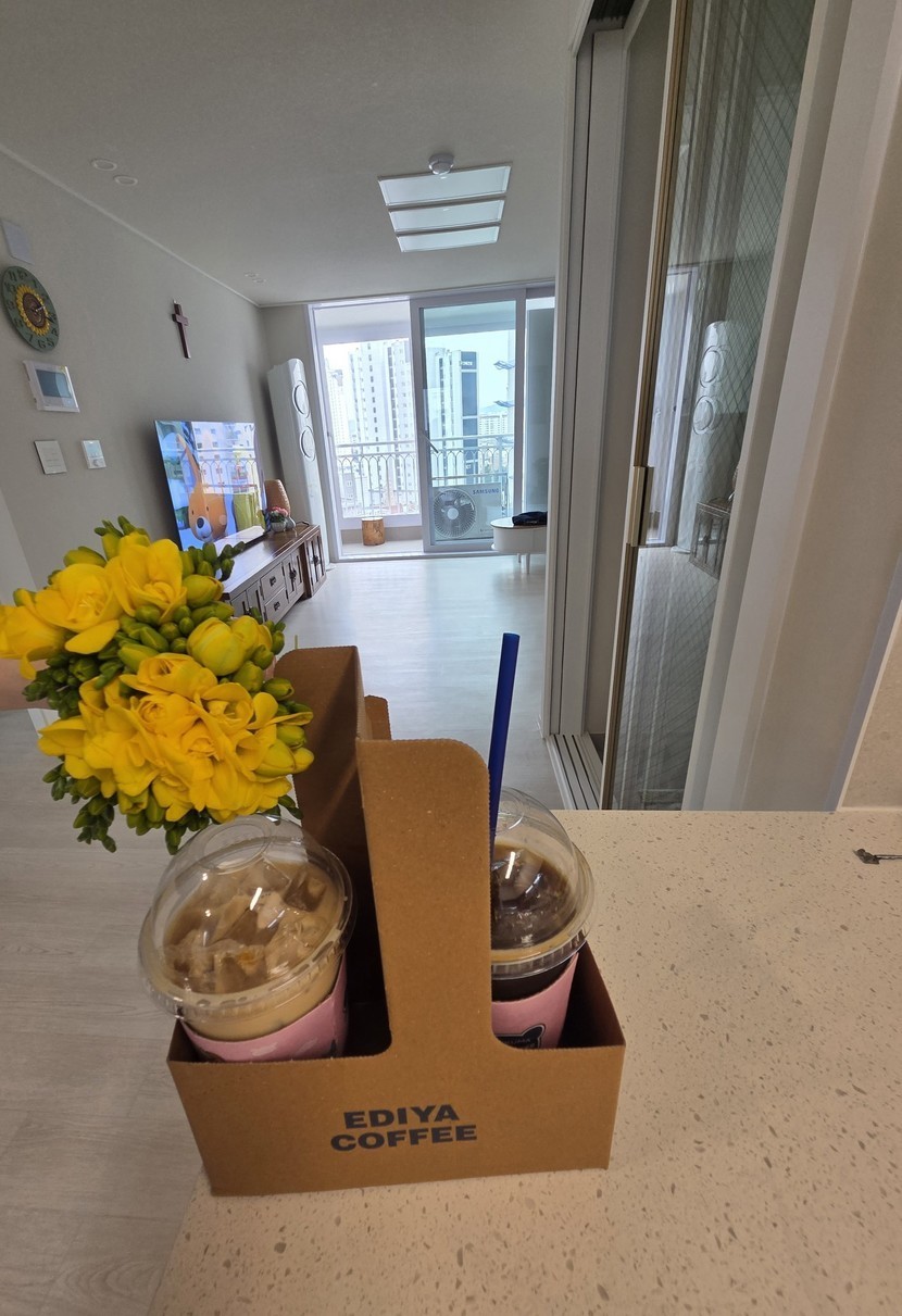 어제 이사했어요 딸 가족이랑 맛나게먹고 산책도하고사위가 꽃도사주고감동🥰