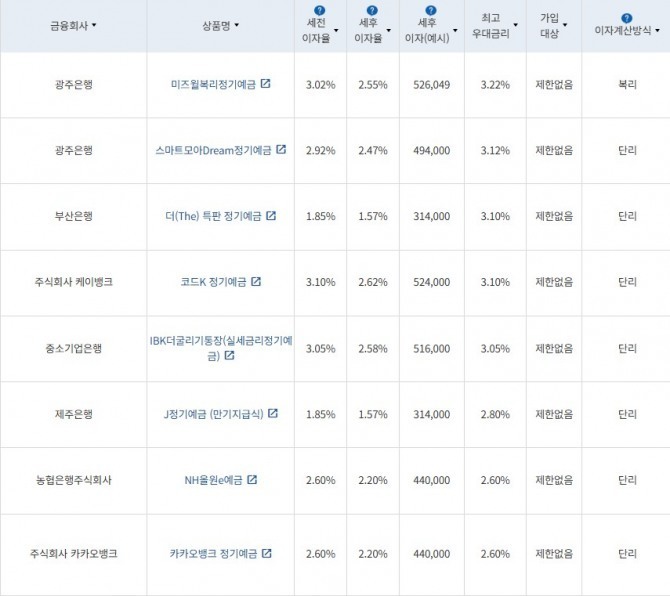 3월 29일 금융감독원 금융상품통합비교공시에 따르면 은행 24개월 정기예금 가운데 최고 우대금리를 제공하는 상품은 광주은행의 ‘미즈월복리정기예금’으로 나타났다.