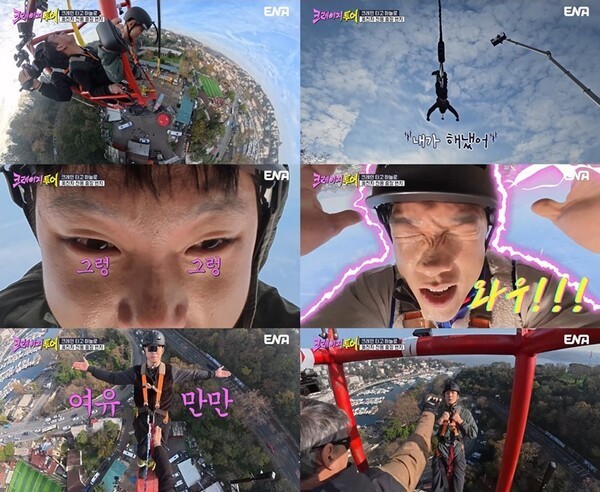 세계최고 높이의 마카오 타워번지 점프 성공경력이 있는 빠니보틀은 공포를 이겨내고 몸을 던졌지만, 지상으로 돌아오자마자 “아무 기억이 안 난다”라며 넋이 나가고 눈물까지 그렁그렁 맺혀 이번 미션의 위력을 실감케 했다.