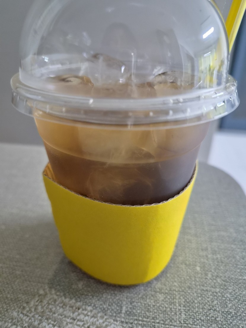 라떼랑 아이스티 받아와서 빵이랑 먹었어요.