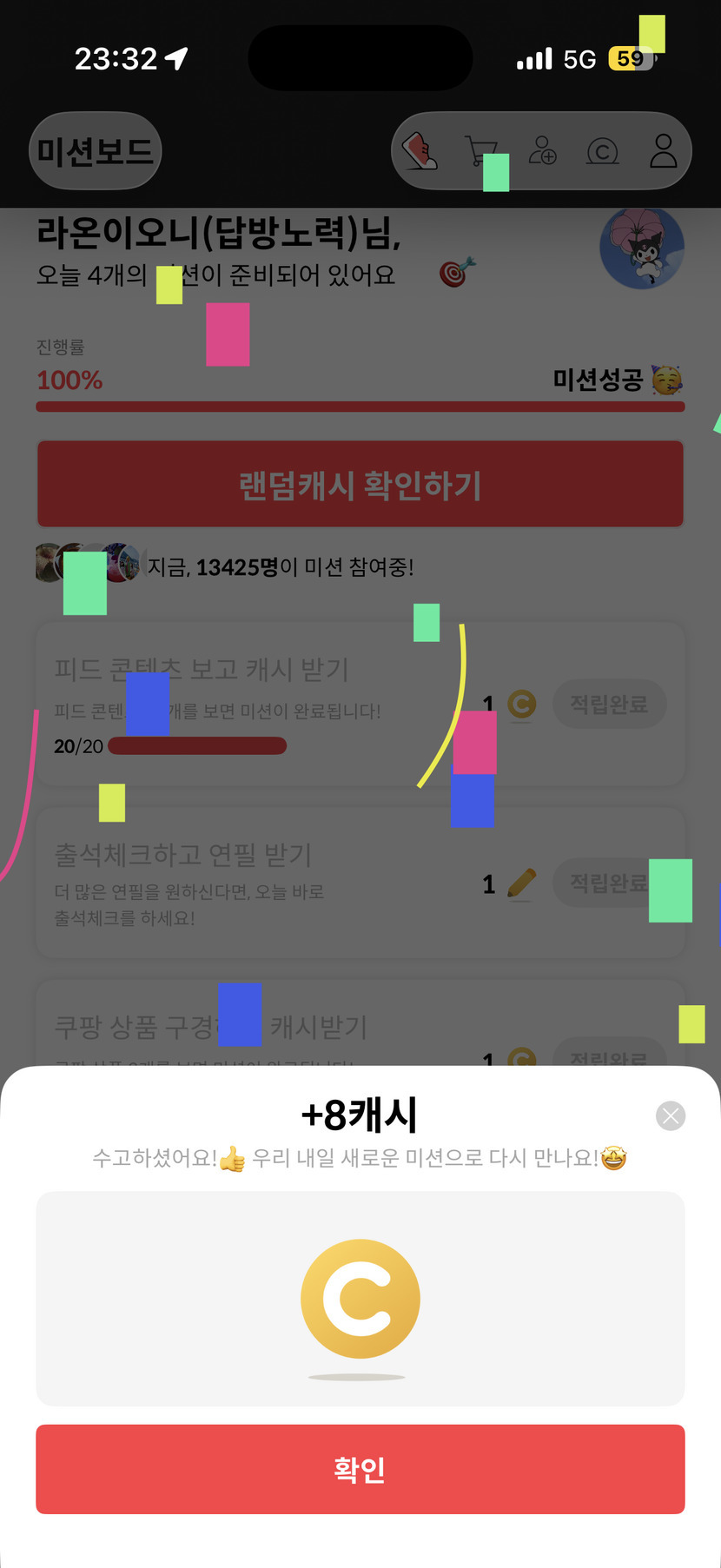 미션완료 8캐시