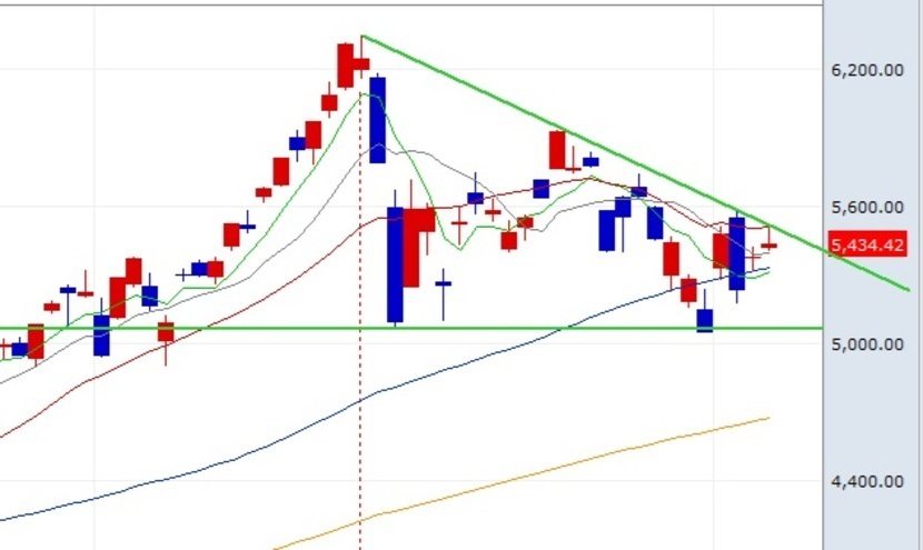 코스피 차트는 삼각수렴의 형태를 보이고 있습니다.