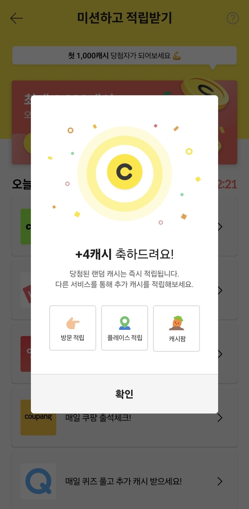 미션하고 적립받기