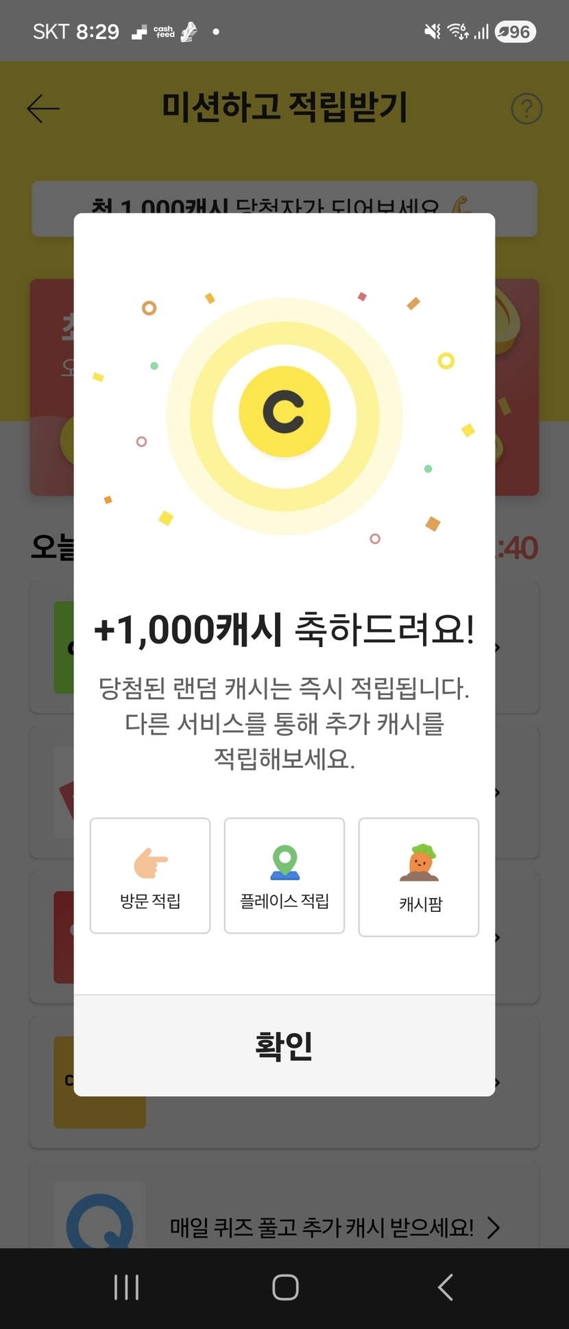 와우~1000캐시, 100캐시 당첨~~
