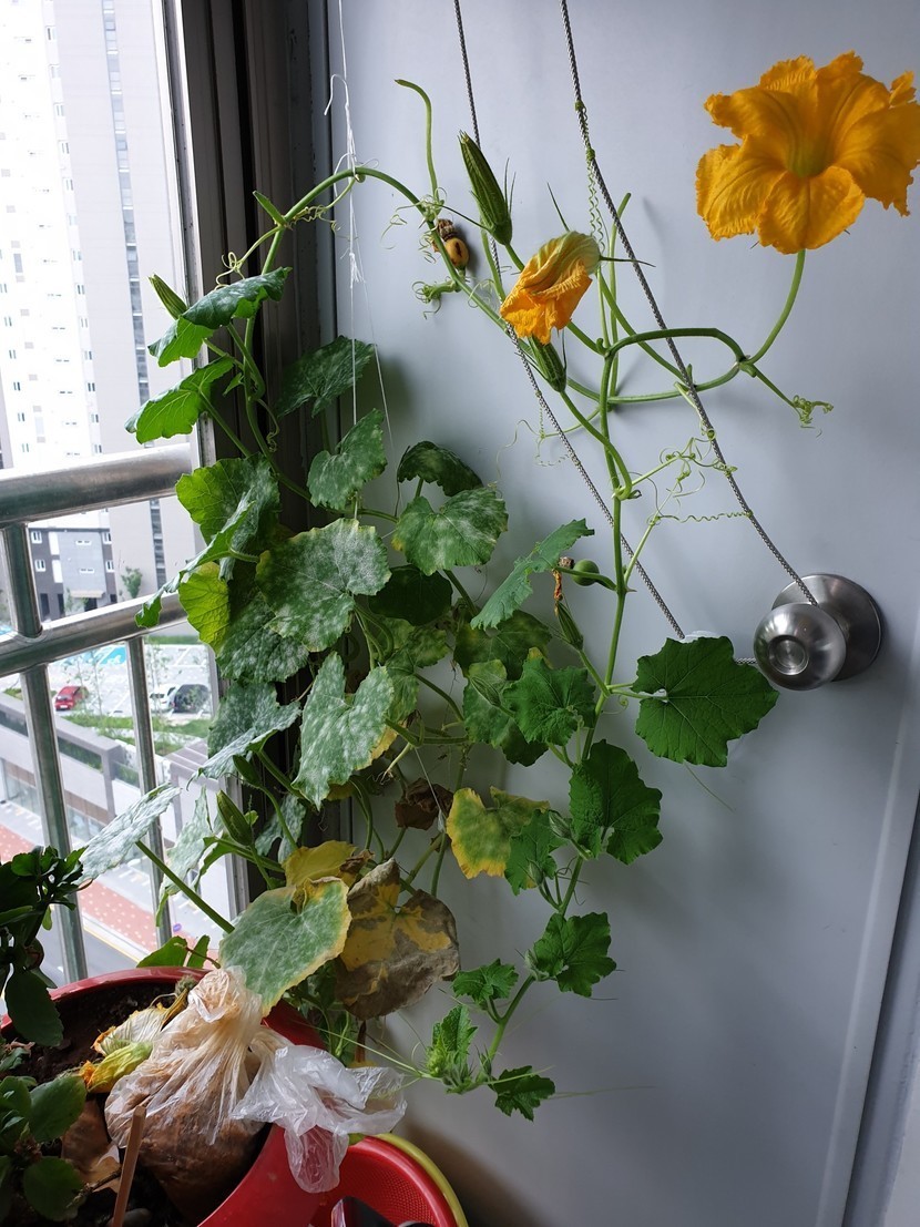 20.07.07 461 읽음 베란다에서 키우는 호박넝쿨 예삐언니♡ 구독하기 42 41 콘텐츠의 수익 28 베란다에서 키우는 호박의 잎을 따다 아침찬으로 먹어 버렸어요 ㅎㅎㅎ베란다에서 키우고 있는 호박잎을 아침찬으로 먹기 위해 때때로 눈독을 들이고 있었지요 ㅎㅎㅎ이눔에 호박넝쿨이 암꽃은 피우지 않고 숫꽃만 피우기를 반복.....드디어 암꽃이 피고 숫꽃으로 수정해주고 먹을만한 잎을 따서 전자렌지에 익혀 먹어 버렸습니다 ㅎㅎㅎ꿀맛이더라구여 ㅋㅋㅋ다 늙은 호박 넝쿨은 호박이 잘자라면 계속 지켜보고 잘 자라지 못하면 뽑아버릴꺼에요 ㅎㅎㅎ 41 0 / 300 입력