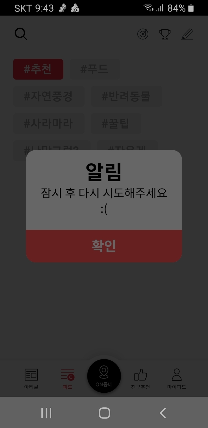 20.07.13 195 읽음 오늘 저만 이랬나요? 영AHA ㅡ답방천사 구독하기 36 44 콘텐츠의 수익 24 오늘 아침 저만 이랬나요?캐피가 아침내내 이런 상태였구요지금도 열렸다 아니다를 반복해요이 글도 일단 올려보는데 될 지는 미지수네요밤새 밀린 구독자님들 글에댓글달려고 뛰어다닌 손가락이 고생했네요 44 0 / 300 입력