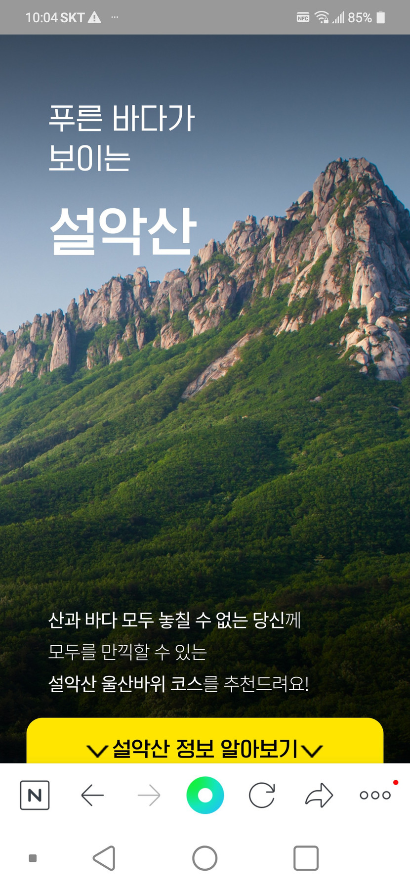 20.07.23 346 읽음 나에게 딱 맞는 등산코스를 캐피가 가르쳐 주네요★★★ Jungseo7 구독하기 108 111 콘텐츠의 수익 43 나에게 딱 맞는 등산 코스는 설악산으로 가라네요.고등학교 수학여행 가보고 아직 못가 봤네요.사는게 뭔지 어찌어찌 하다보니 설악산을 .세월은 가고 나이도 먹어가고 빨리 꼭 가봐야겠어요.캐피가 있고 있었던 여행지도 가보라고 가르쳐주네요.캐피님들 오늘도 비도 많이 오는데 수고하셨습니다.편안한 밤 되세요.😀😀😀 111 0 / 300 입력
